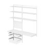 Модульная конструкция позволяет легко менять расположение полок, корзин и штанг, подстраивая их под рост и интересы — от хранения игрушек и книг до одежды и учебных принадлежностей.