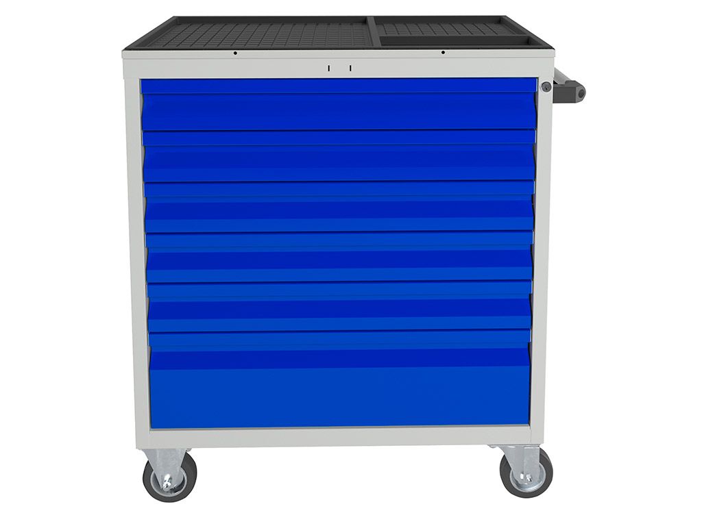 Корпус – серый (RAL 7038, шагрень), ящики – синий (RAL 5002, шагрень)