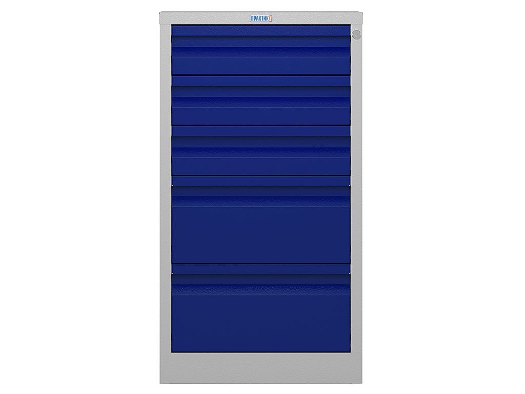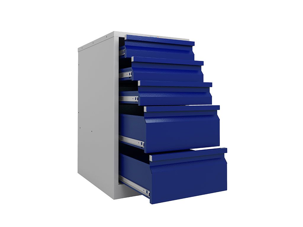 корпус серый полуматовый (RAL 7038), лицевые панели ящиков синие (RAL 5002)