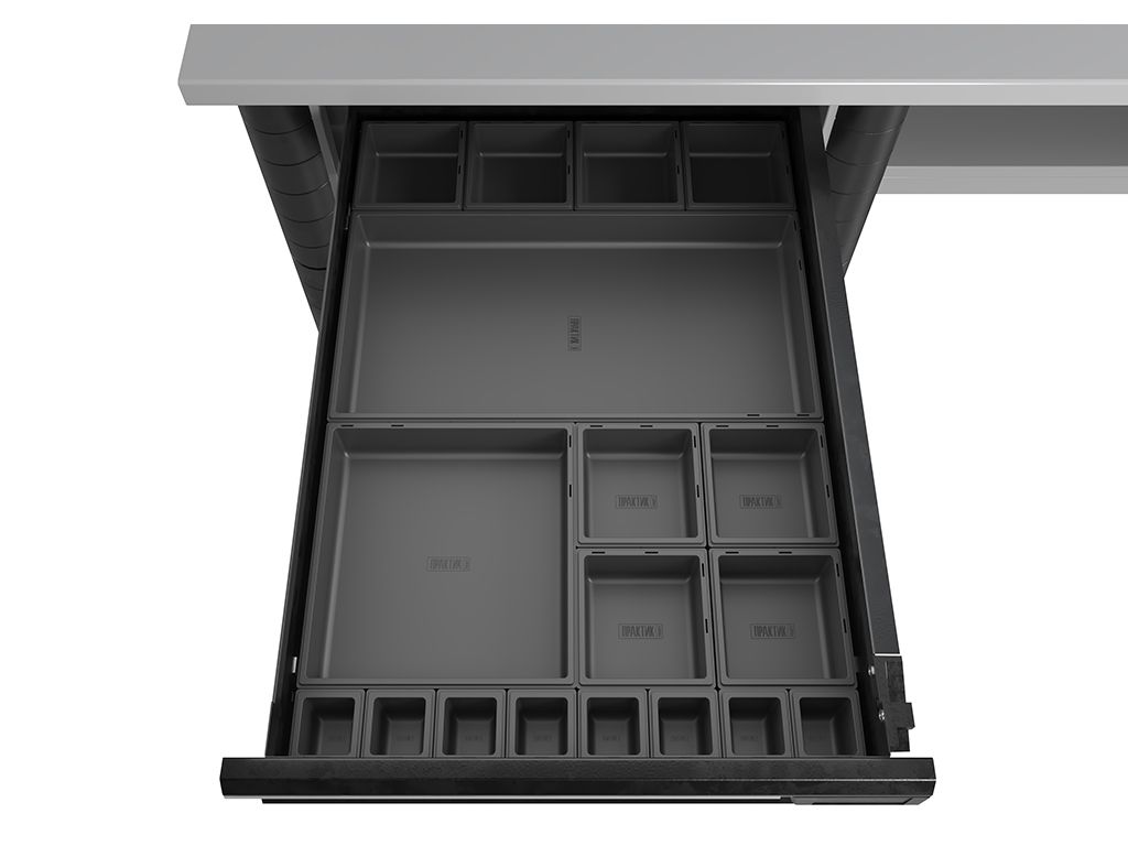- Данный комплект наборных ящиков предназначен для организации хранения в выдвижных ящиках верстачных тумб серии Profi M (M-4, M-5).