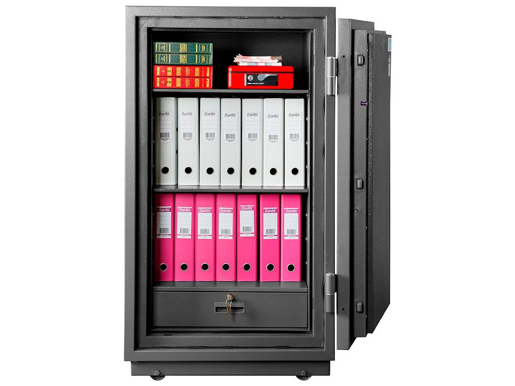 Предназначен для сохранности документов и ценностей при пожаре. Огнестойкость: ГОСТ Р 57384-2017: класс 60Б.