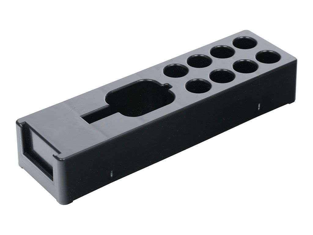 - Оружие фиксируется вертикально ствольной частью в пазу подставки-колодки. Патроны в количестве 8 штук, вставляются в колодку.