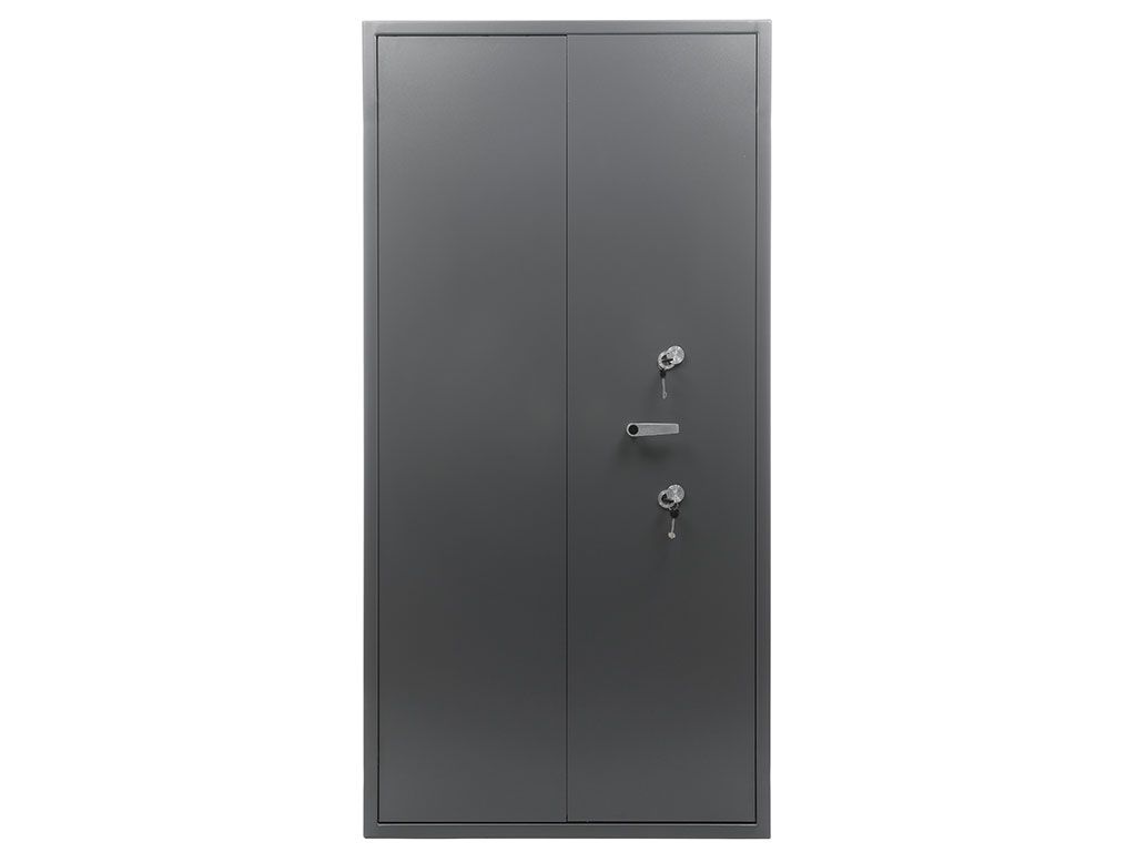 - Комплектуются двумя ключевыми сувальдными замками 2 класса ГОСТ 5089-2011 (по 2 ключа от каждого замка в комплекте) с опечатывающими устройствами на замочной скважине