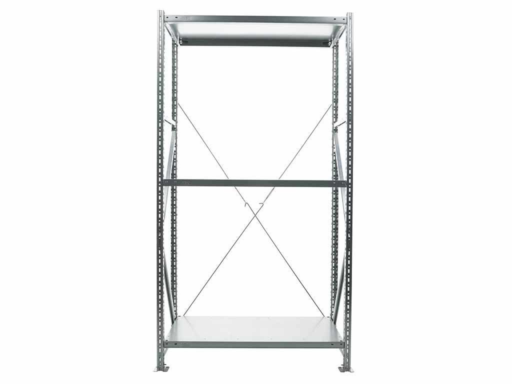 - Нагрузка на одиночную секцию стеллажа до 1000кг (с одним комплектом крестовин)