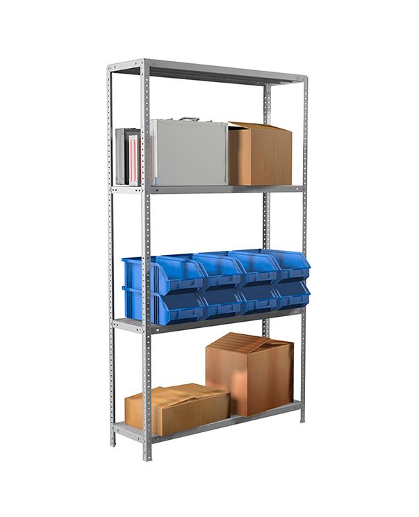 - максимальная нагрузка на стеллаж в стандартной комплектации (верхняя и нижняя полки крепятся через Г-образные усилители, остальные полки напрямую к стойке) с использованием стоек MS Standart –500 кг.