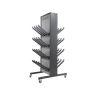 - Для удобства перемещения стойка снабжена резиновыми колесами, диаметр 75 мм (2 колеса поворотные со стопором, 2 колеса поворотные).
