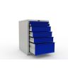 Корпус тумбы, опора – серый (RAL 7038, шагрень), ящики тумбы, экран, косынки – синий (RAL 5002, шагрень)