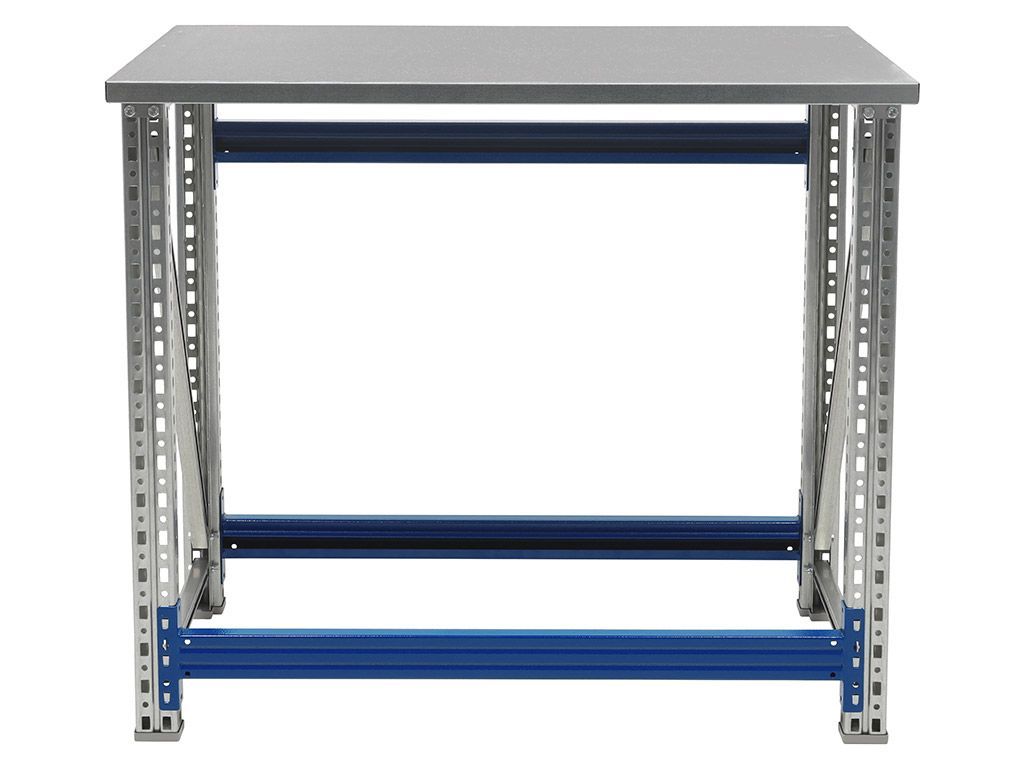 - Основные элементы верстака (опоры, полка, накладка на столешницу) изготовлены из оцинкованной стали, что позволяет устанавливать его в местах с повышенной влажностью.