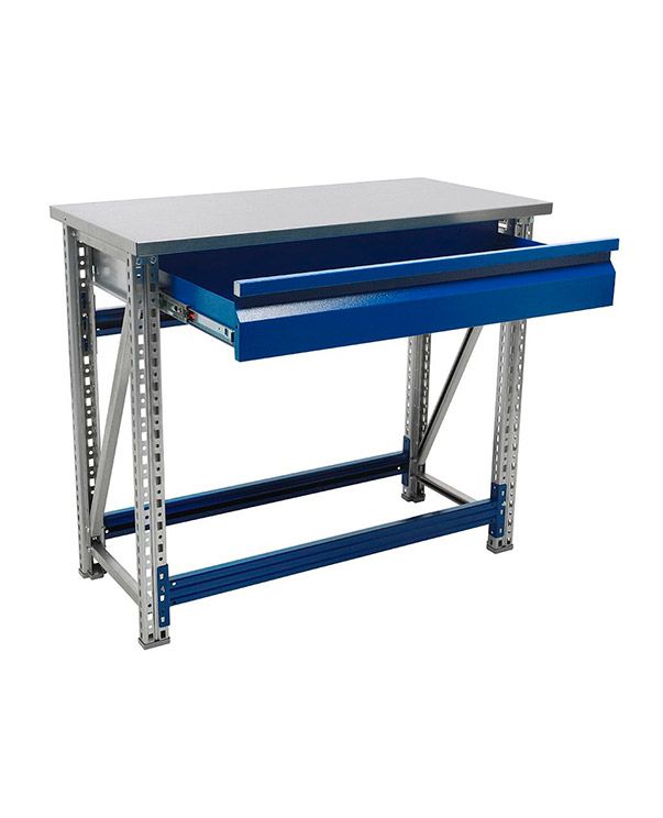 - Возможность дополнить верстак полкой (нагрузка 100 кг) и выдвижным ящиком (нагрузка 30 кг).