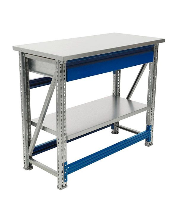 - Возможность дополнить верстак полкой (нагрузка 100 кг) и выдвижным ящиком (нагрузка 30 кг).