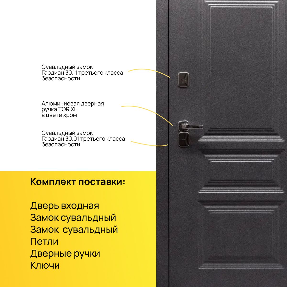 Дверь входная, замак сувальдный -2 шт, петли, дверные ручки, ключи